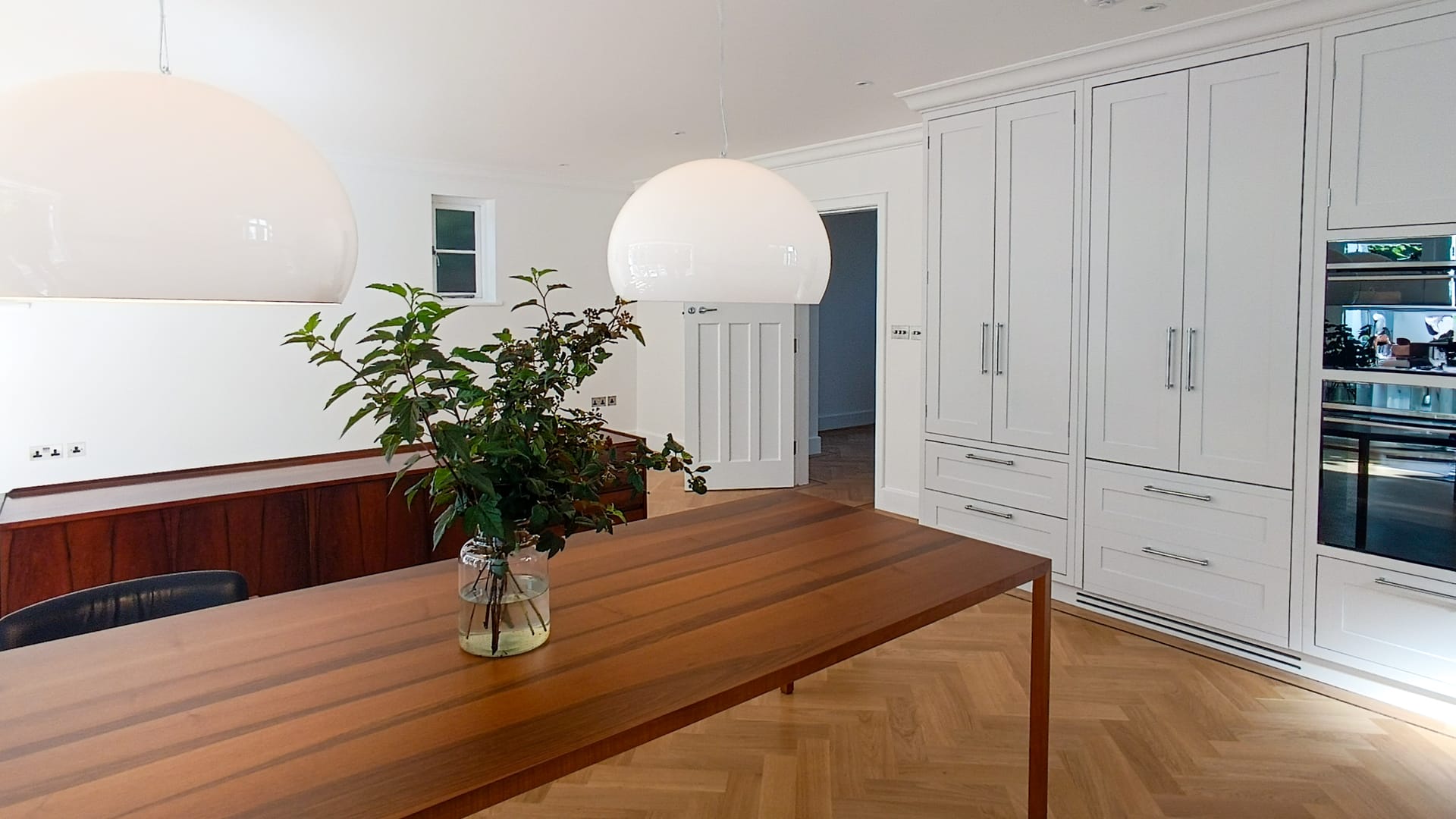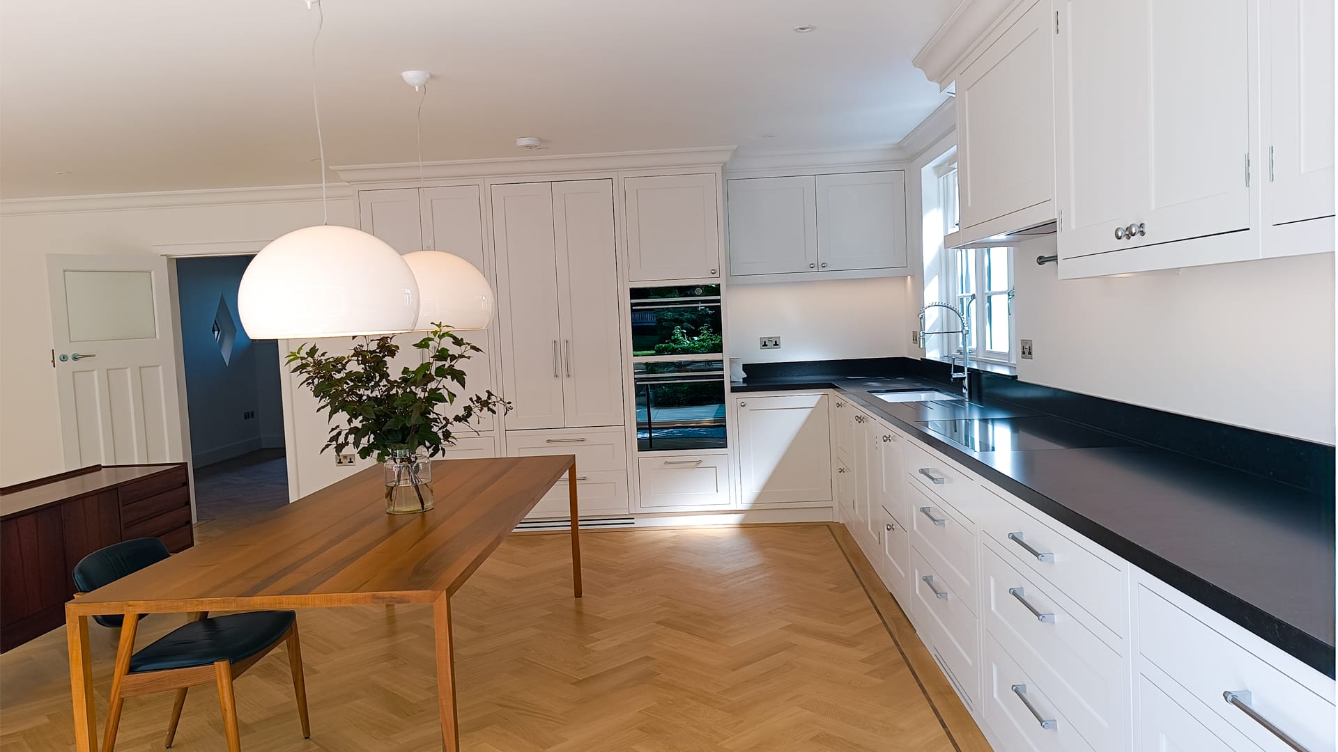Our client in Wimbledon commissioned a full-scale home refurbishment to modernise a classic property while preserving its traditional charm. As part of the project, we executed a strategic redesign to enlarge the living room into the rear garden, creating a spacious, open-plan living area. Our team created a new kitchen, new bathrooms, designed and built a new oak staircase to fit the character of the home. We provided all new bespoke carpentry and joinery, resulting in a beautifully designed and highly functional space.